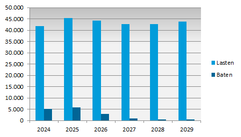 Saldo van lasten en baten | 37.002 | 40.444 | 42.164 | 42.239 | 42.329 | 43.331 |